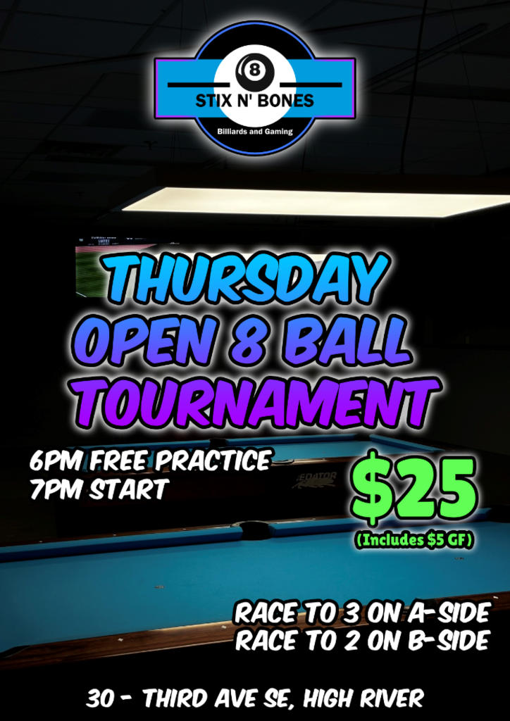 Stix N Bones Billiards & Gaming, Unit #22, 30-Third AVE SE, High River, AB