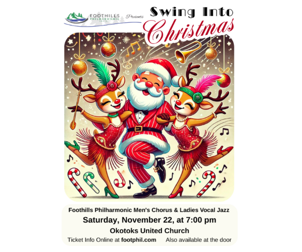 The Foothills Philharmonic Society's Men's Chorus and Ladies' Vocal Jazz ensembles will be sure to get you into the Christmas spirit by performing jazzy medleys of popular festive tunes and favourites like Feliz Navidad, The First Noel and Believe.