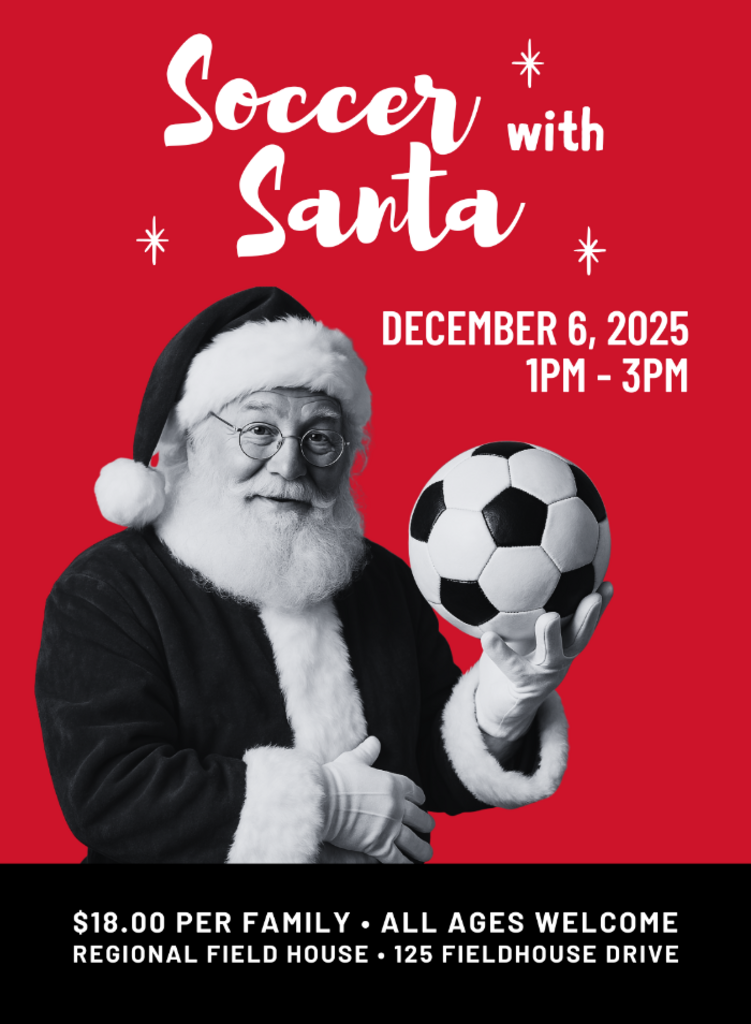 Santa is coming to town, and he loves soccer! Join us at this festive family event where young ones will enjoy playing soccer with Santa and some bouncy castle action. A Little Elves craft corner, hot chocolate and cupcake decorating will add to the fun. This is a family event, and a parent/guardian will need to accompany the children.