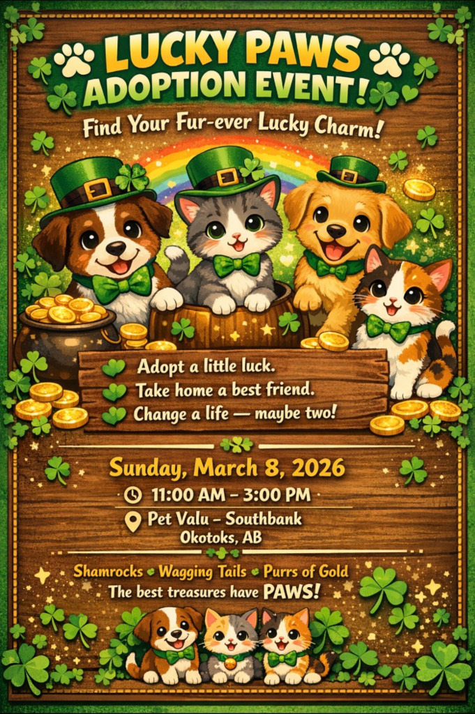 It’s your lucky day!! Southbank Pet Valu hosts Pound Rescue 11-3. Meet puppies and kittens looking for their forever homes! Chat with the volunteers about fostering and adoption!