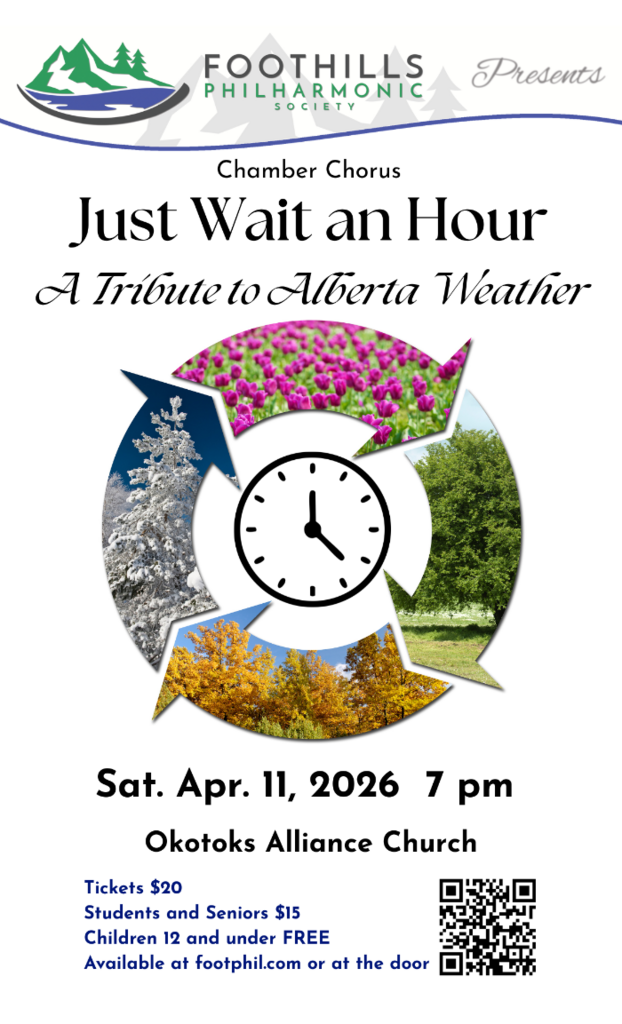 The Foothills Philharmonic Chamber Chorus will perform a light hearted concert of songs about weather, reflecting the drastic and dramatic weather extremes we experience in Alberta.