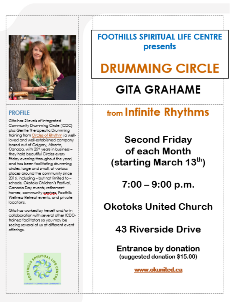 Join Gita for the steady, healing rhythm of drumming on the second Friday of each month. Suggested donation, $15.