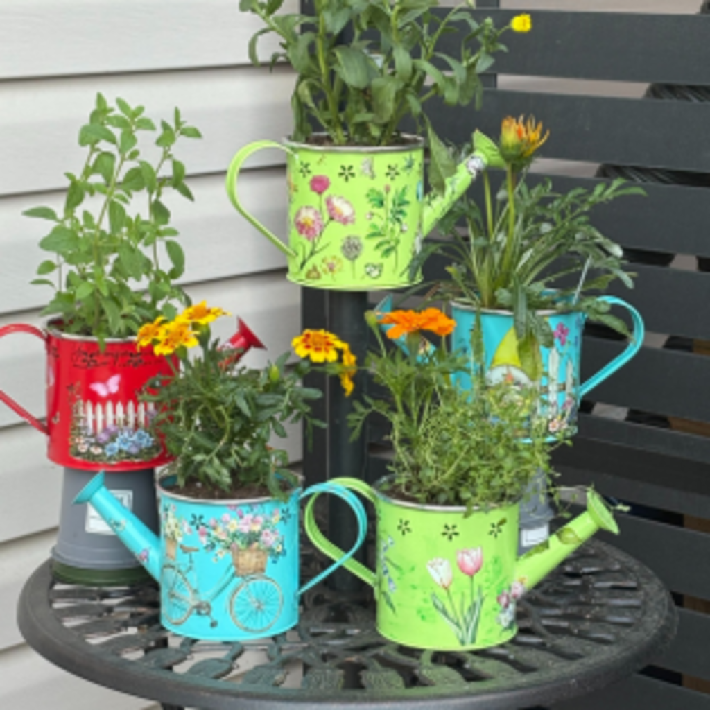 Transform ordinary watering cans into stunning flower pots that will make your garden shine! With our unique crafting technique, you'll use a variety of whimsical transfer decal images—think vibrant florals, charming quotes, or quirky animal designs—to add your personal touch. Once adorned, each pot is sealed for protection, ensuring it stays beautiful through the seasons. Different colored pots will be available.